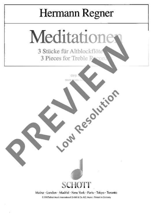 Digital Sheet Music for Meditations by Hermann Regner scored for Treble Recorder; id:482605