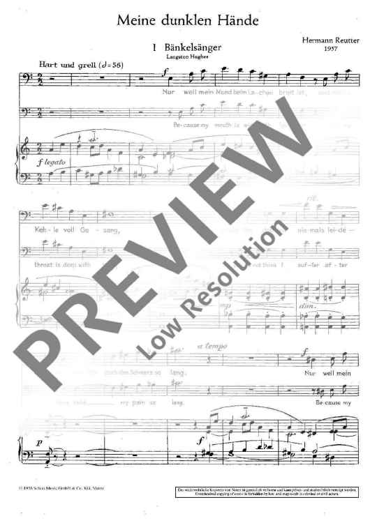 Digital Sheet Music for Meine dunklen Hände by Hermann Reutter scored for Baritone And Piano; id:487163