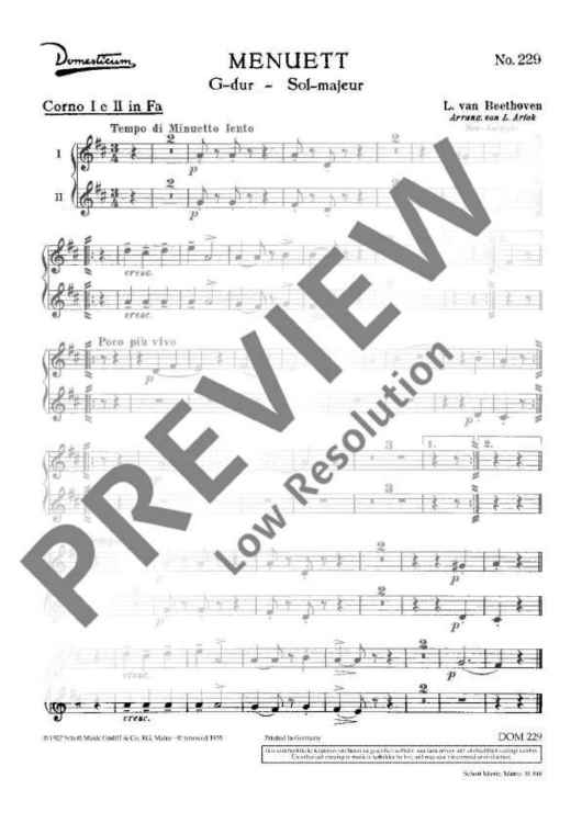 "Menuet G major - Set of Parts" Sheet Music by Ludwig van Beethoven