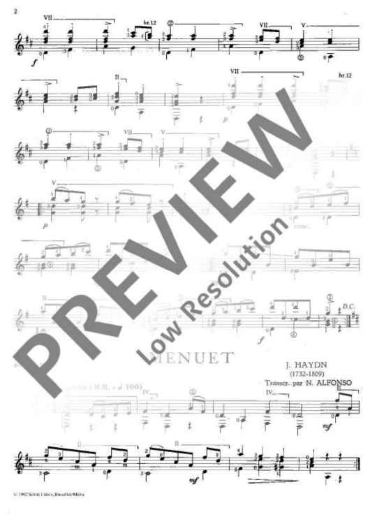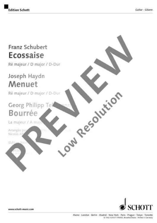 Digital Sheet Music for Menuett D-Dur / Ecossaise in D / Bourrée A-Dur by Georg Philipp Telemann, Franz Schubert, Joseph Haydn scored for Guitar; id:476360