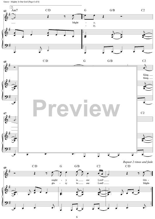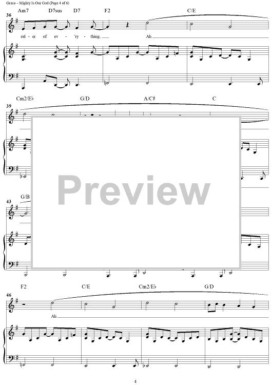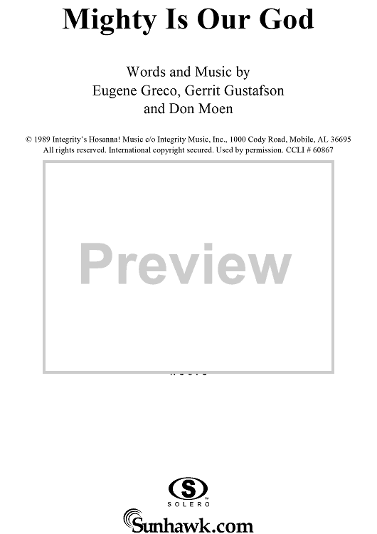 Digital Sheet Music for Mighty Is Our God by Don Moen, Gerrit Gustafson, Eugene Greco scored for Piano/Vocal/Chords; id:307726