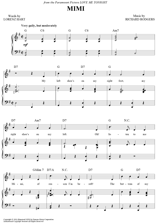 Digital Sheet Music for Mimi by Richard Rodgers, Lorenz Hart scored for Piano/Vocal/Chords; id:404418