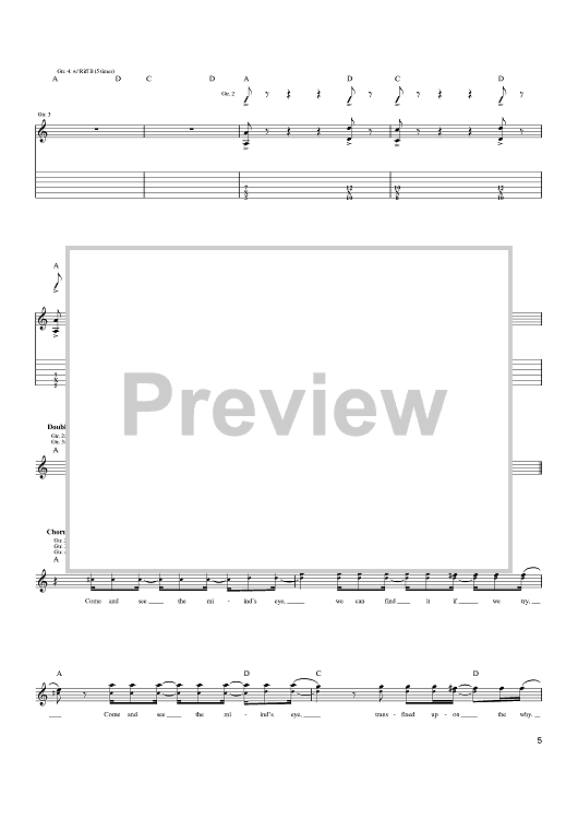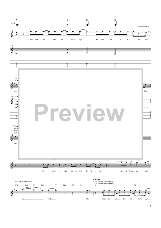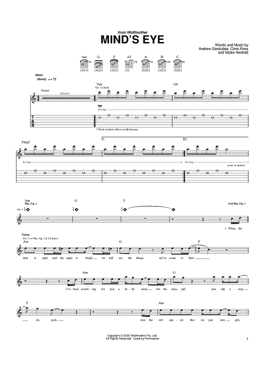 Digital Sheet Music for Mind's Eye by Andrew Stockdale, Chris Ross, Myles Heskett, Wolfmother scored for Guitar Tab; id:393739