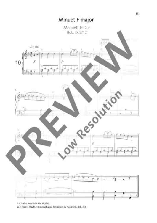 The three-volume collection Mini Maestro presents little piano pieces advancing progressively from very easy to intermediate level, presented in chronological order across five centuries from the Baroque, Classical, Romantic and Modern eras through to jazz, pop and minimal music. At the end of each volume – under the heading More fun to play together – there are three additional pieces for piano duet. All the pieces are easy to learn and offer varied repertoire as an ideal supplement to any piano tutorial method with music suitable for concert performance, tuition purposes, examinations and competitions. Book 1 contains pieces in the five-finger range at various pitches, followed by pieces spanning an octave range with simple rhythms and easy chord sequences. Also featured are differing styles of articulation, melody in the left hand, octave or ottava signs, pieces in major and minor keys with key signatures of up to one sharp or flat. Book 2 contains pieces with an extended range of two octaves and chord sequences with three or four parts, including inversions. Other features include using the pedal, simple ornaments, basic polyphony, differentiating melody and accompaniment, pieces in major and minor keys with key signatures of up to two sharps or flats. Book 3 contains pieces with a range of up to four octaves with more demanding rhythms and speeds. Also included are subtle contrasts in tone, playing with expression, playing more than one part with one hand and advanced polyphony in major and minor keys with key signatures of up to three sharps or flats.