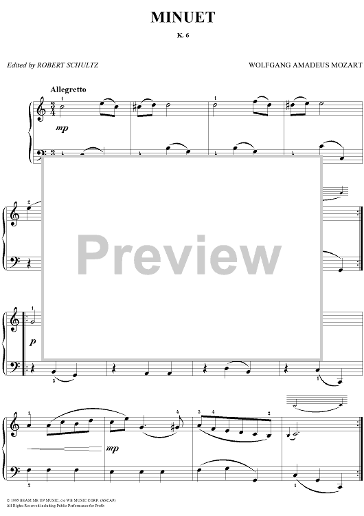 Digital Sheet Music for Minuet by Wolfgang Amadeus Mozart scored for Easy Piano; id:284633