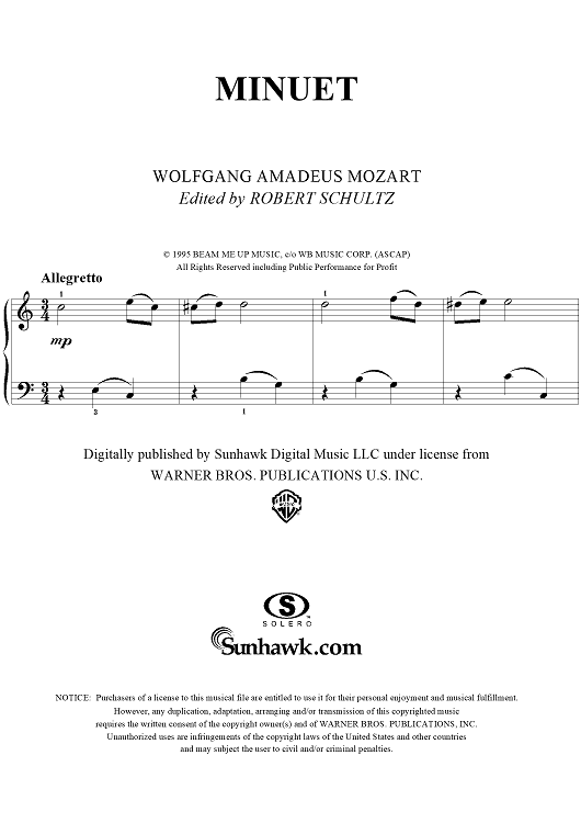 "Minuet" Sheet Music by Wolfgang Amadeus Mozart