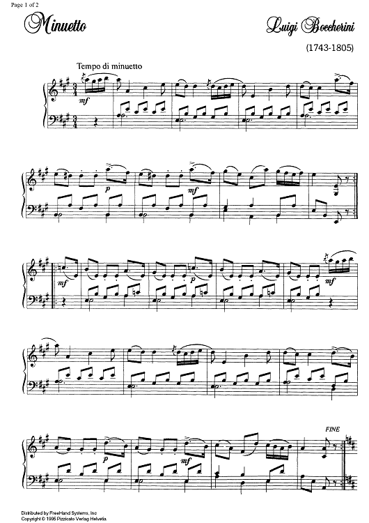 Digital Sheet Music for Minuet by Luigi Boccherini, G. Danieli scored for Piano Solo; id:329316