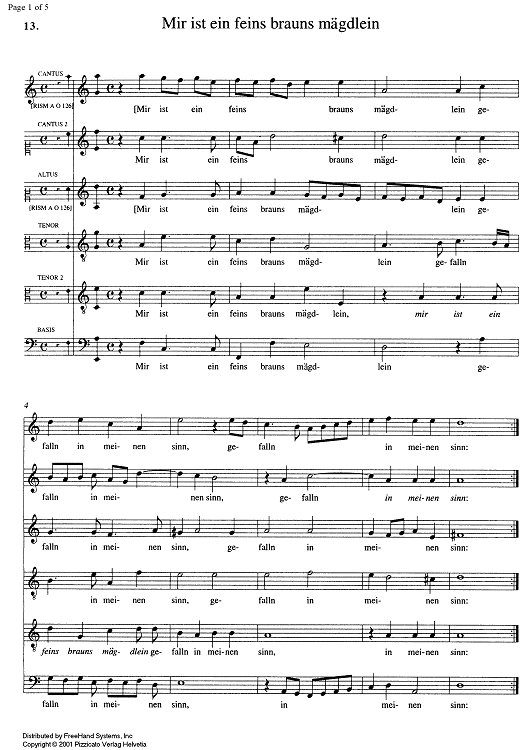 Digital Sheet Music for Mir ist ein feins brauns mägdlein by , Alessandro Orologio scored for SATB Choir; id:337732
