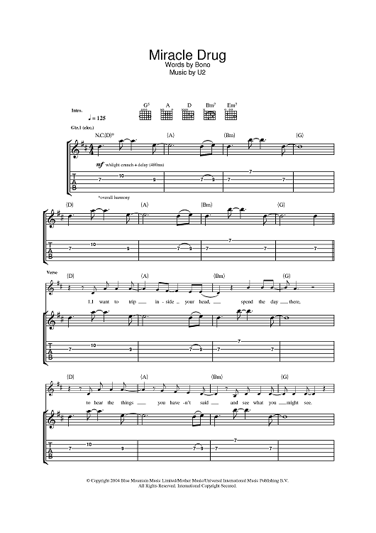 Digital Sheet Music for Miracle Drug by U2, Bono scored for Guitar Tab; id:381694