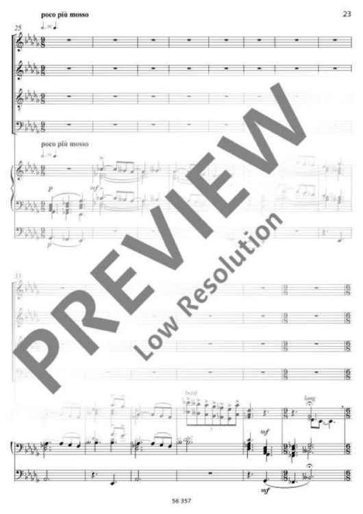 The five movements of this mass are based on five Songs Without Words from Leoš Janácek's piano cycle By Overgrown Paths. Poos describes his work as “Parody, Arrangement and Kontrafaktur” and a metamorphosis of Janácek's piano pieces.
