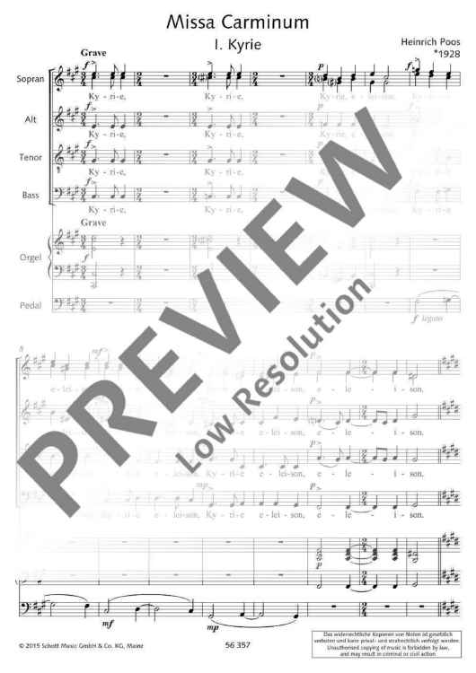 "Missa Carminum - Organ Reduction" Sheet Music by Heinrich Poos