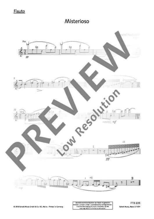 Krzysztof Penderecki schrieb das Misterioso für Flöte und Klavier ursprünglich als Beitrag für die Flötenschule Skola na flet von Eugeniusz Towarnicki. Diese wurde 1963 publiziert und gilt als erste Flötenschule in Polen, die sich als Standardwerk etablieren konnte. Für die vorliegende Neuausgabe des Misterioso wurde ein anspruchsvoller neuer Notensatz erstellt.