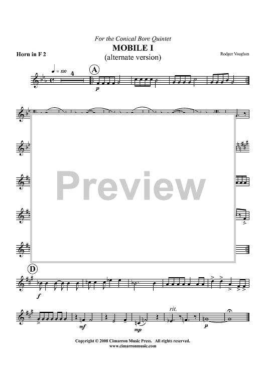 "Mobile I - Horn in F 2" Sheet Music by Rodger Vaughan