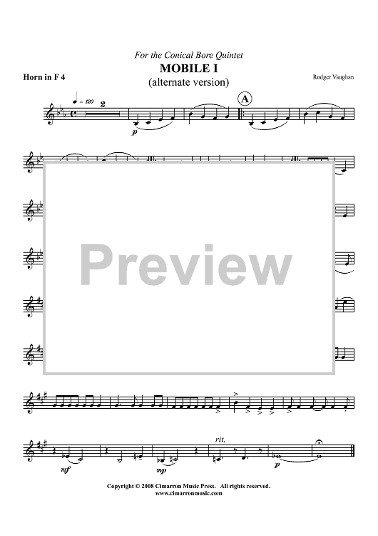 "Mobile I - Horn in F 4" Sheet Music by Rodger Vaughan