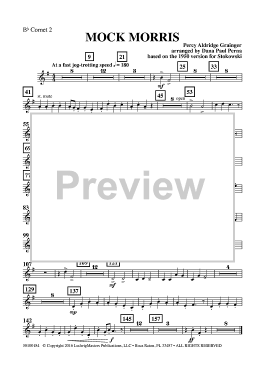 "Mock Morris - Bb Cornet 2" Sheet Music by Percy Grainger