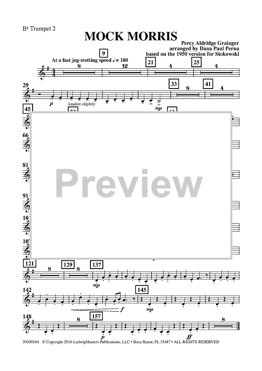 "Mock Morris - Bb Trumpet 2" Sheet Music by Percy Grainger