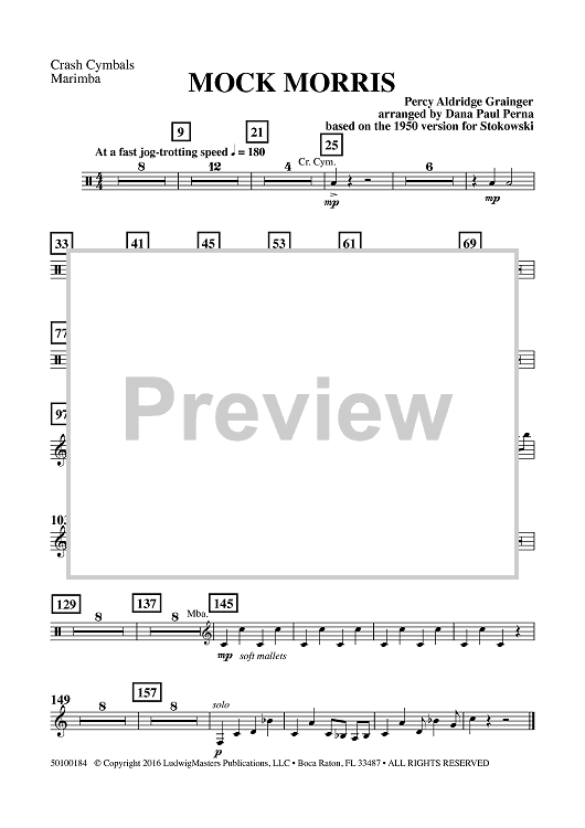 Digital Sheet Music for Mock Morris - Crash Cymbals / Marimba by Percy Grainger scored for Concert Band; id:461736