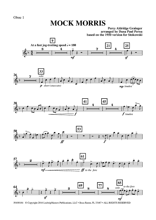 "Mock Morris - Oboe 1" Sheet Music by Percy Grainger