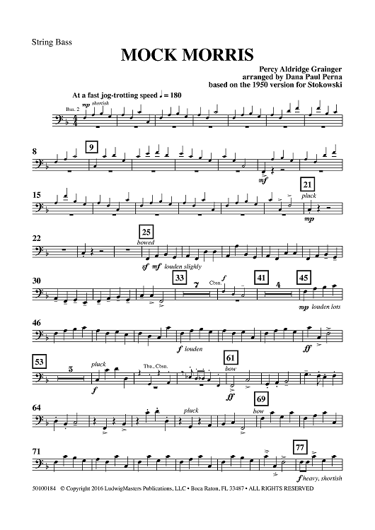 "Mock Morris - String Bass" Sheet Music by Percy Grainger