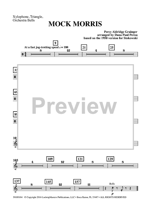 "Mock Morris - Xylophone / Triangle / Orchestra Bells" Sheet Music by Percy Grainger