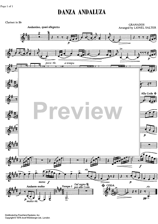 Digital Sheet Music for Moderate 2/2 - Danza Andaluza - Clarinet by Lionel Salter, Enrique Granados scored for Clarinet/Piano; id:332653