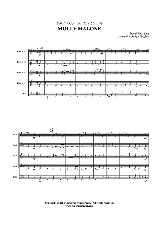 Digital Sheet Music for Molly Malone - Score by Rodger Vaughan, English Folk Song scored for Brass Ensemble; id:417124