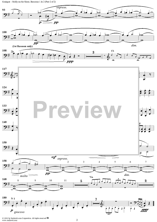 "Molly on the Shore (Irish Reel) - Bassoons" Sheet Music by Percy Grainger