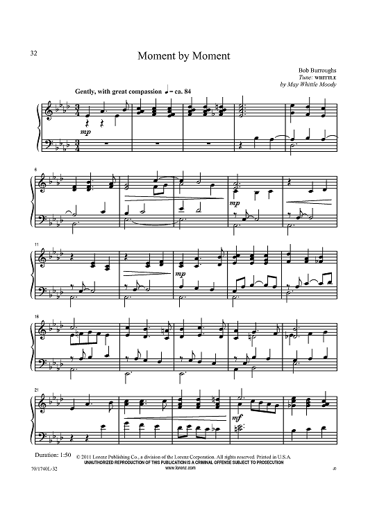 Digital Sheet Music for Moment by Moment by Bob Burroughs, May Whittle Moody scored for Piano Solo; id:433986