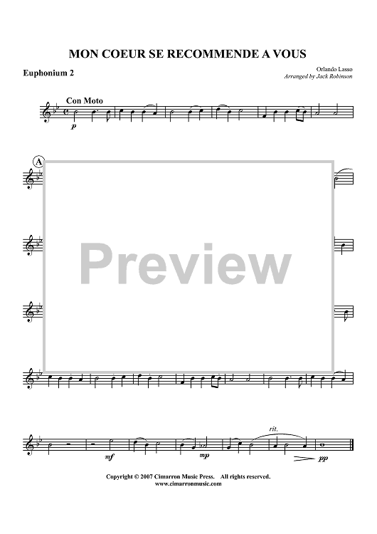 Digital Sheet Music for Mon Coeur Se Recommende a Vous - Euphonium 2 BC/TC by Orlando de Lassus, Jack Robinson scored for Tuba Quartet; id:416528