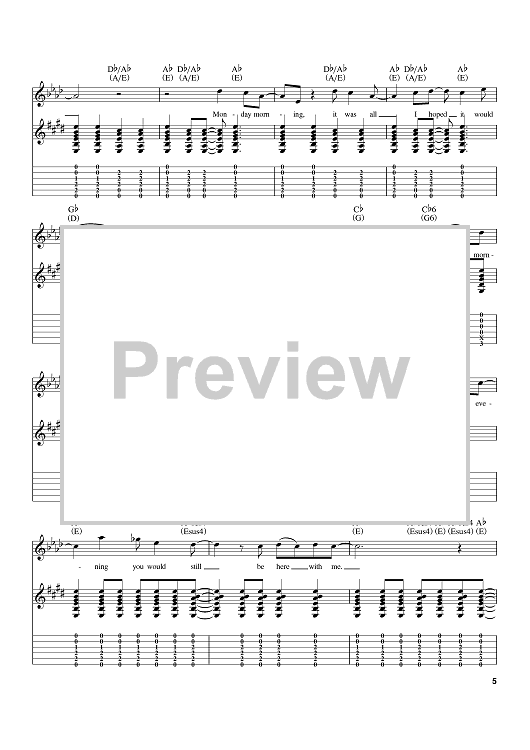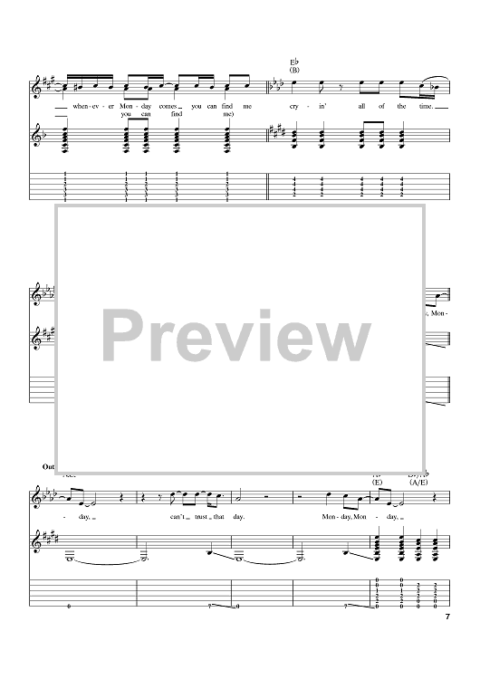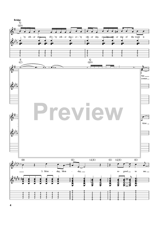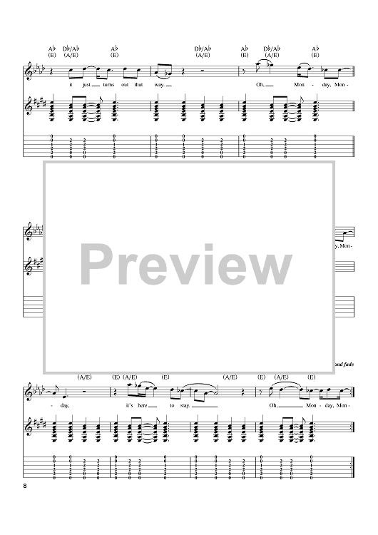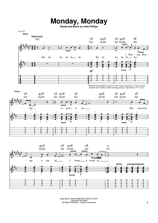 Digital Sheet Music for Monday, Monday by The Mamas and The Papas, John Phillips scored for Guitar Tab; id:397589