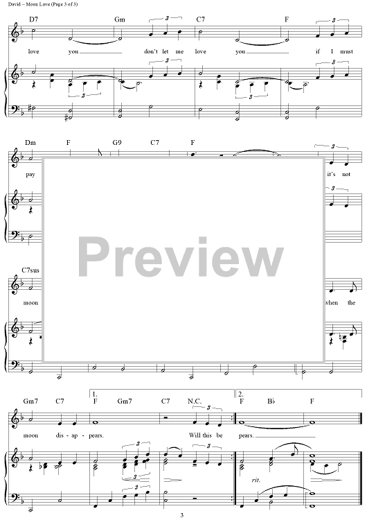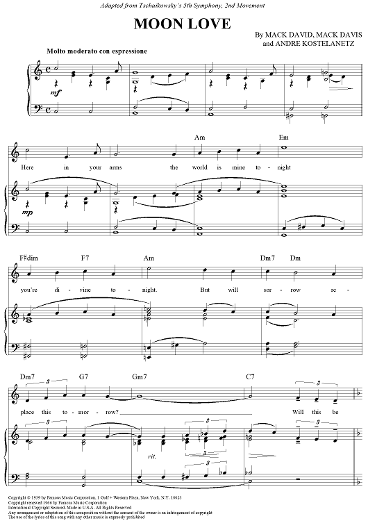 Digital Sheet Music for Moon Love by Mack David, Andre Kostelanetz, Mack Davis scored for Piano/Vocal/Chords; id:365212