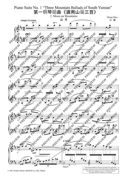 Digital Sheet Music for Moon on Mountains by Zhao Zhang scored for Piano; id:490010