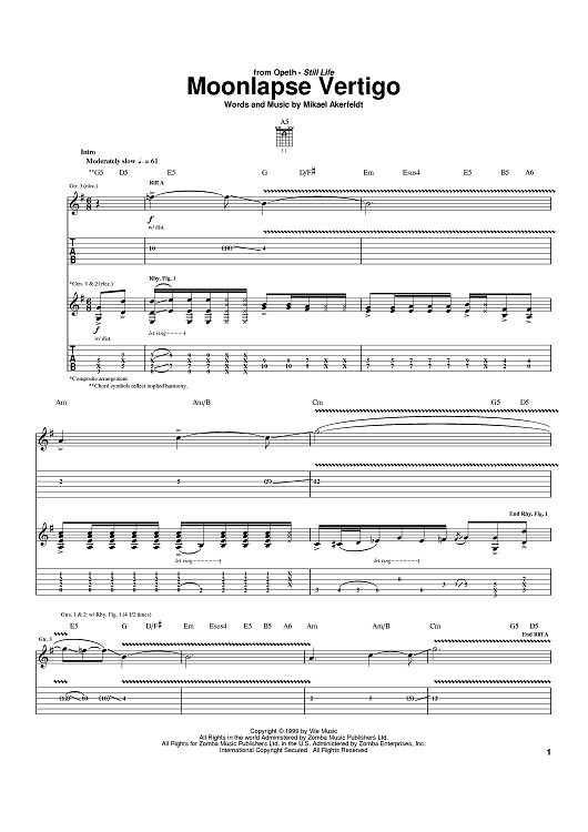 Digital Sheet Music for Moonlapse Vertigo by Mikael Akerfeldt, Opeth scored for Guitar Tab; id:397969