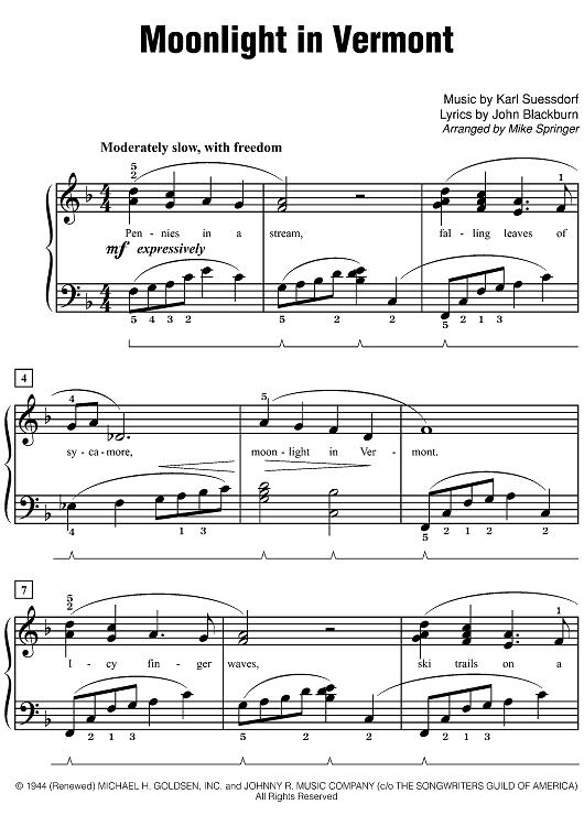 Digital Sheet Music for Moonlight in Vermont by Karl Suessdorf, John Blackburn, Mike Springer scored for Easy Piano; id:497921
