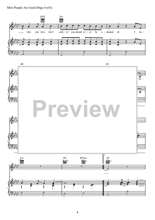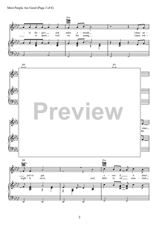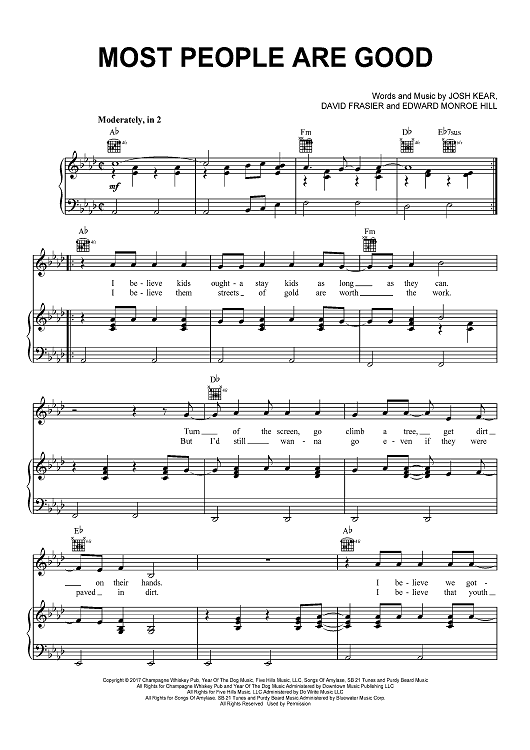 Digital Sheet Music for Most People Are Good by Edward Hill, Josh Kear, Luke Bryan, David Ray Frasier scored for Piano/Vocal/Chords; id:467479