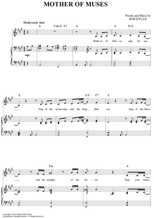"Mother Of Muses" Sheet Music by Bob Dylan