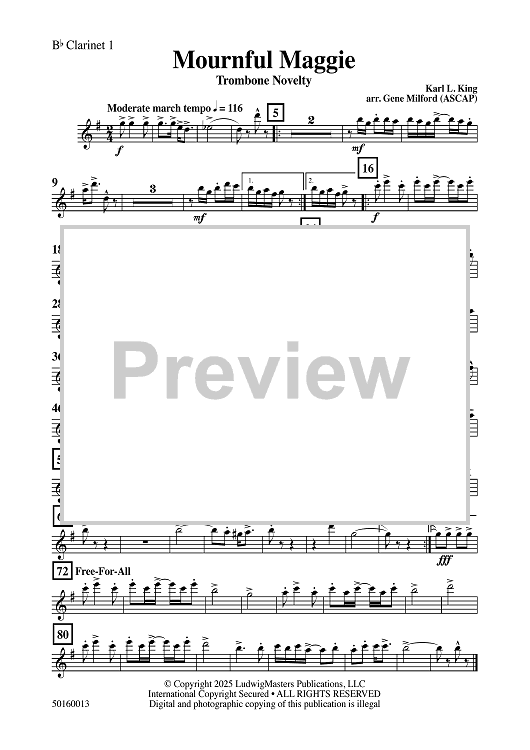Digital Sheet Music for Mournful Maggie (Trombone Novelty) - Bb Clarinet 1 by Gene Milford, Karl King scored for Concert Band; id:508927