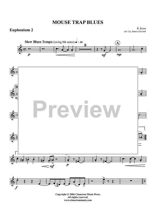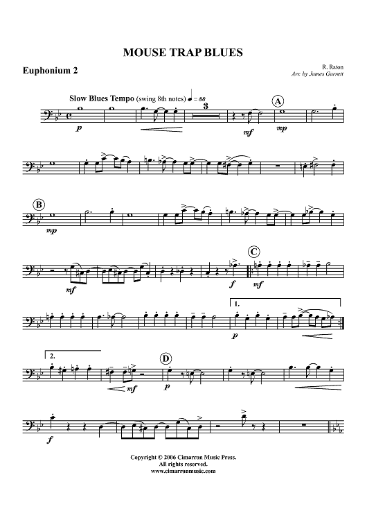 Digital Sheet Music for Mouse Trap Blues - Euphonium 2 BC/TC by James Garrett, Rodente Raton scored for Tuba Quartet; id:359114