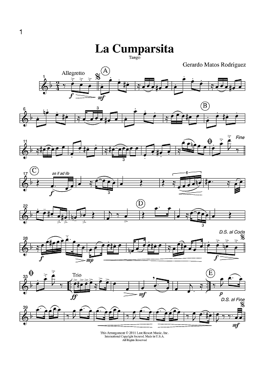 "Music for Four, Collection No. 3 - Tangos and More! - Part 1 Clarinet in Bb" Sheet Music by Various