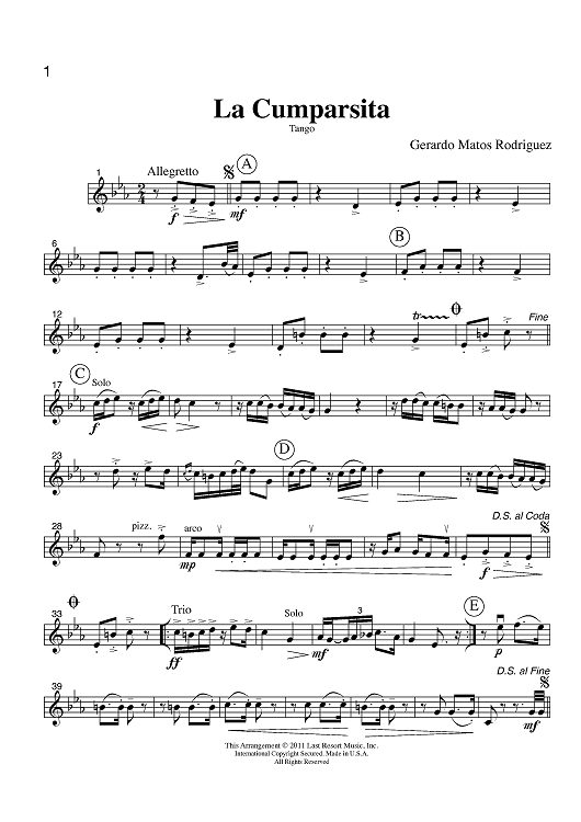 Digital Sheet Music for Music for Four, Collection No. 3 - Tangos and More! - Part 2 Flute, Oboe or Violin by Various, Daniel Kelley scored for Instrumental Quartet; id:421229