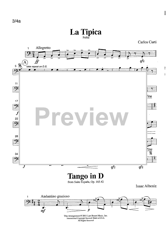 Digital Sheet Music for Music for Four, Collection No. 3 - Tangos and More! - Part 4 Cello or Bassoon by Various, Daniel Kelley scored for Instrumental Quartet; id:421235