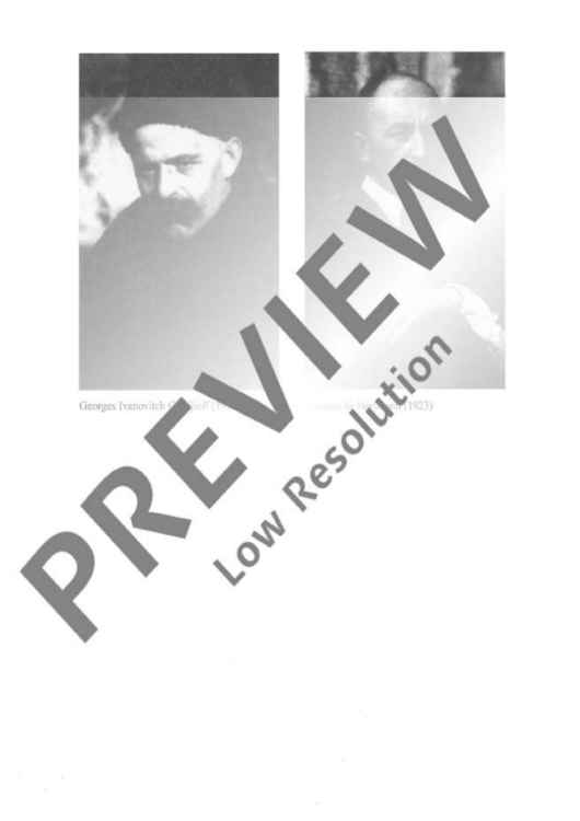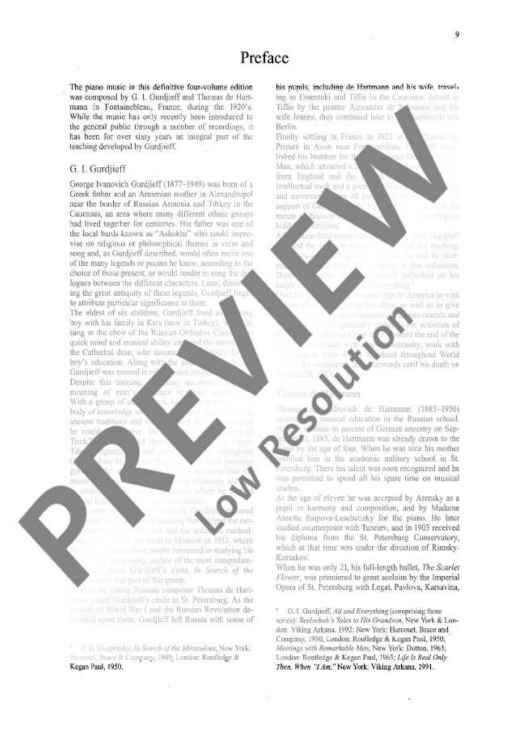 G. I. Gurdjieff travelled for many years through Central Asia and the Middle East collecting melodies and ritual dances, which his friend and pupil Thomas de Hartmann wrote down and arranged as piano pieces. (Vol. 1 = ED 7841, Vol. 2 = ED 7842, Vol. 3 = ED 7844, Vol. 4 = ED 7844) CD recordings: Vol. 1 = WER 62842 Vol. 2 = WER 62922 Vol. 3 = WER 66252 Vol. 4 = WER 66432