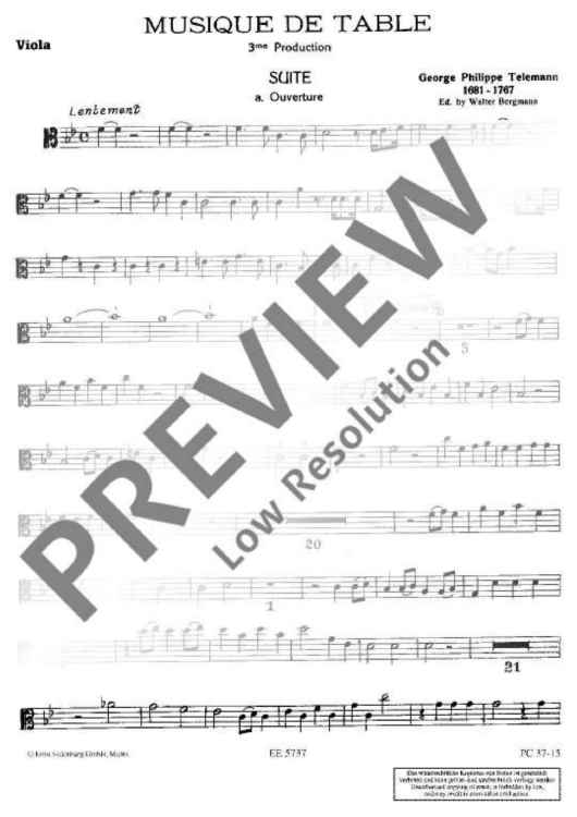 "Musique de table - Viola" Sheet Music by Georg Philipp Telemann