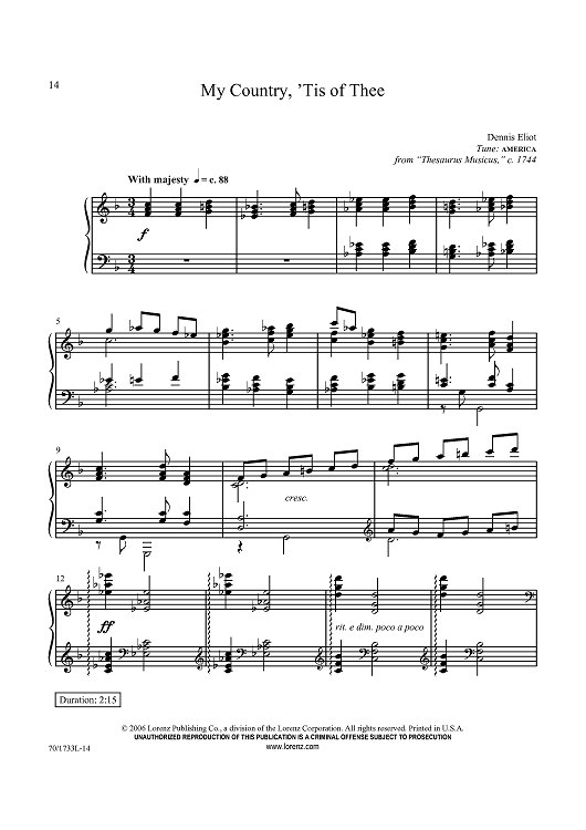 Digital Sheet Music for My Country, ’Tis of Thee by Thesaurus Musicus, Dennis Eliot scored for Piano Solo; id:434176