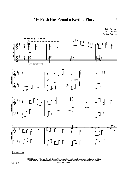 Digital Sheet Music for My Faith Has Found a Resting Place by André Grétry, Patti Drennan scored for Piano Solo; id:433662