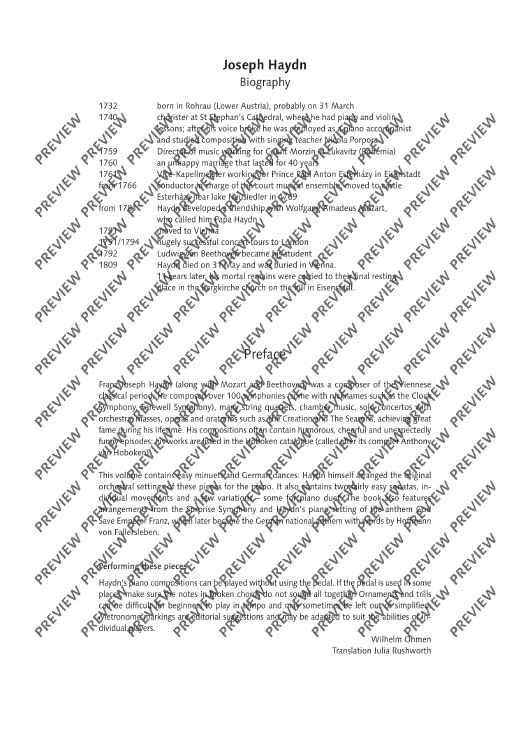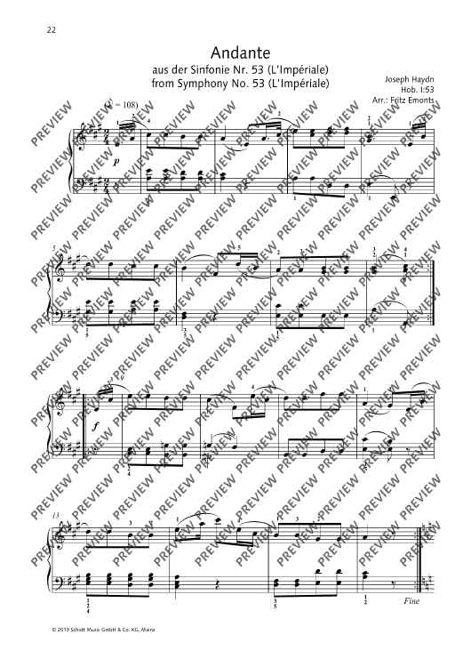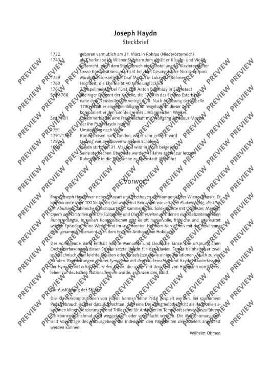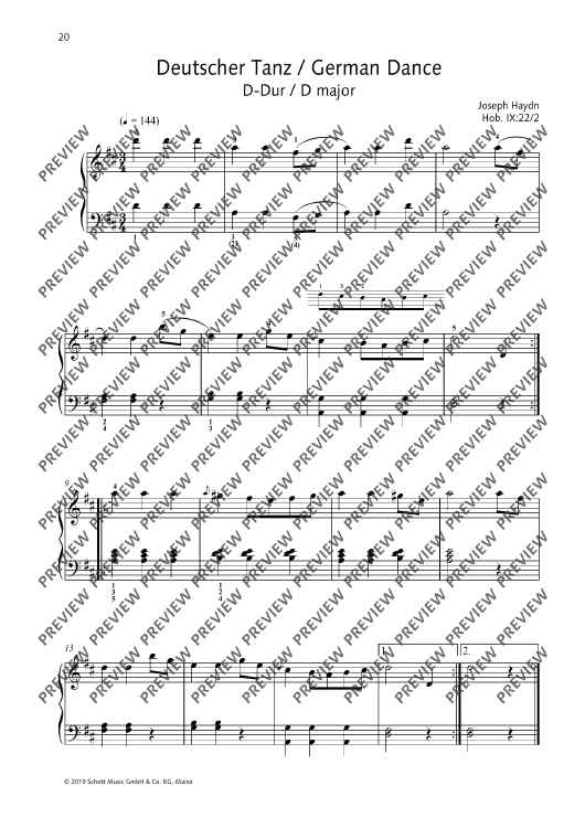 This collection brings together Joseph Haydn's most beloved and light piano pieces. It contains minuets and German dances, sonatas and single movements as well as a few variations - including some for four hands. In addition, it includes Haydn's piano version of the anthem "Gott erhalte Franz den Kaiser" which later became the German national anthem with the text by Hoffmann von Fallersleben. Ideal for teaching and playing at home. Great works for little masters!
