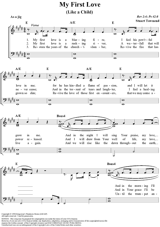 Digital Sheet Music for My First Love (Like a Child) by Stuart Townend scored for Piano/Vocal/Chords; id:95277