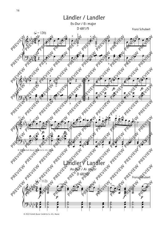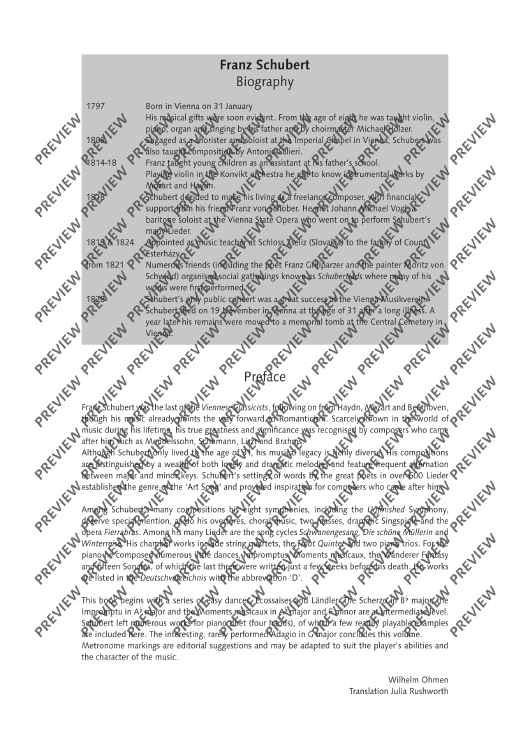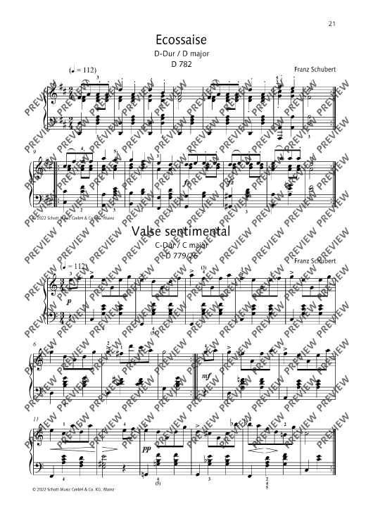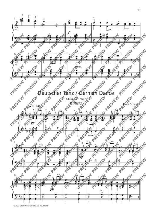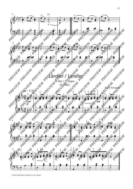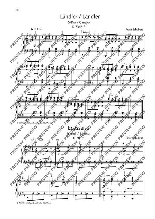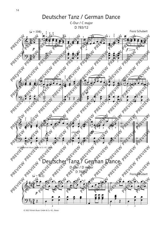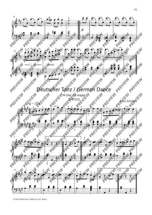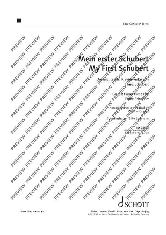 'My First Schubert' contains a selection of the great composer's easier to moderately difficult piano works, including the famous 'Trauerwalzer' (Op. 9, No. 2), Moment musical in F minor (Op. 94, No. 3), the Impromptu in A flat major (Op. 142, No. 2) as well as the most beautiful dances, marches and ländler from the rich repertoire of his famous salon pieces. In addition, this volume offers a selection of easy works for piano four hands. Ideally suited for lessons and playing at home. The perfect introduction to Romantic piano music!