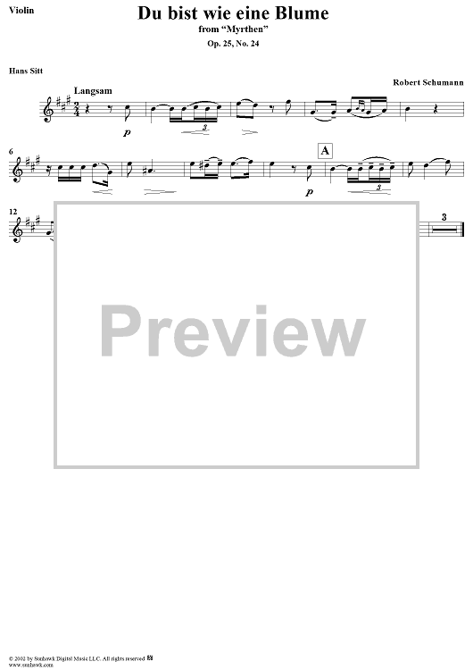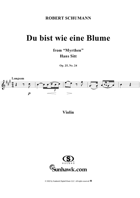"Myrthen (Song cycle), Op. 25, No. 24, "Du bist wie eine Blume", - Violin" Sheet Music by Robert Schumann