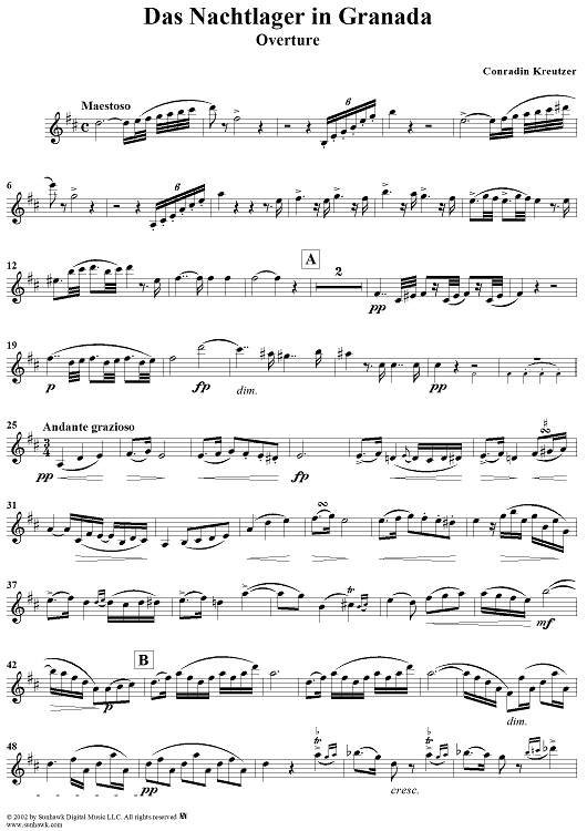"Nachtlager in Granada, Overture - Violin" Sheet Music by Conradin Kreutzer